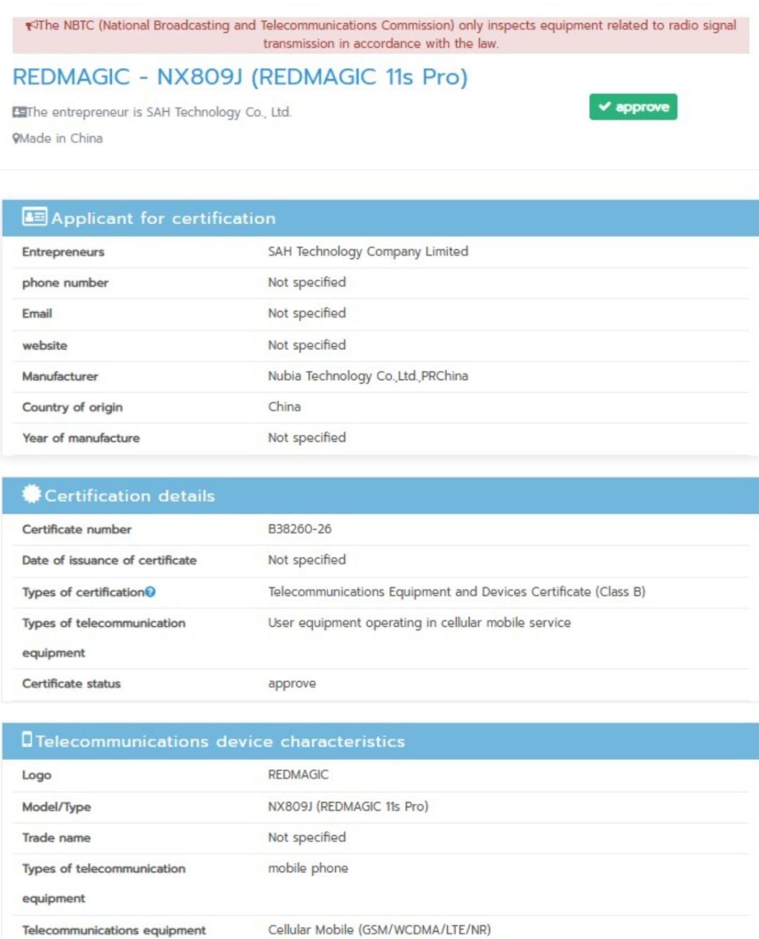 红魔 11S Pro 在泰国 NBTC 通过认证,即将在全球发布,型号依旧是 NX809J。这款有没有可能上 165Hz?
