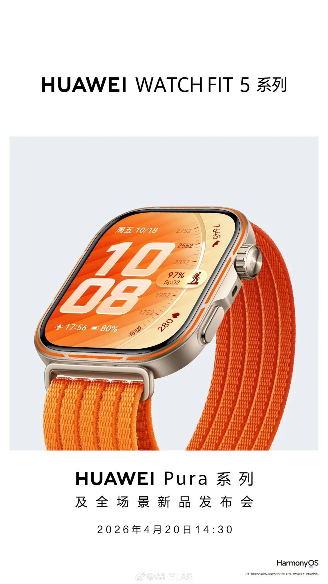 另外,华为 WATCH FIT5 和 WATCH FIT5 Pro 也将在 4 月 20日发布。极窄黑边、蓝宝石玻璃、钛合金表框都来到了 FIT 系列上,这应该是华为最美小方表了。